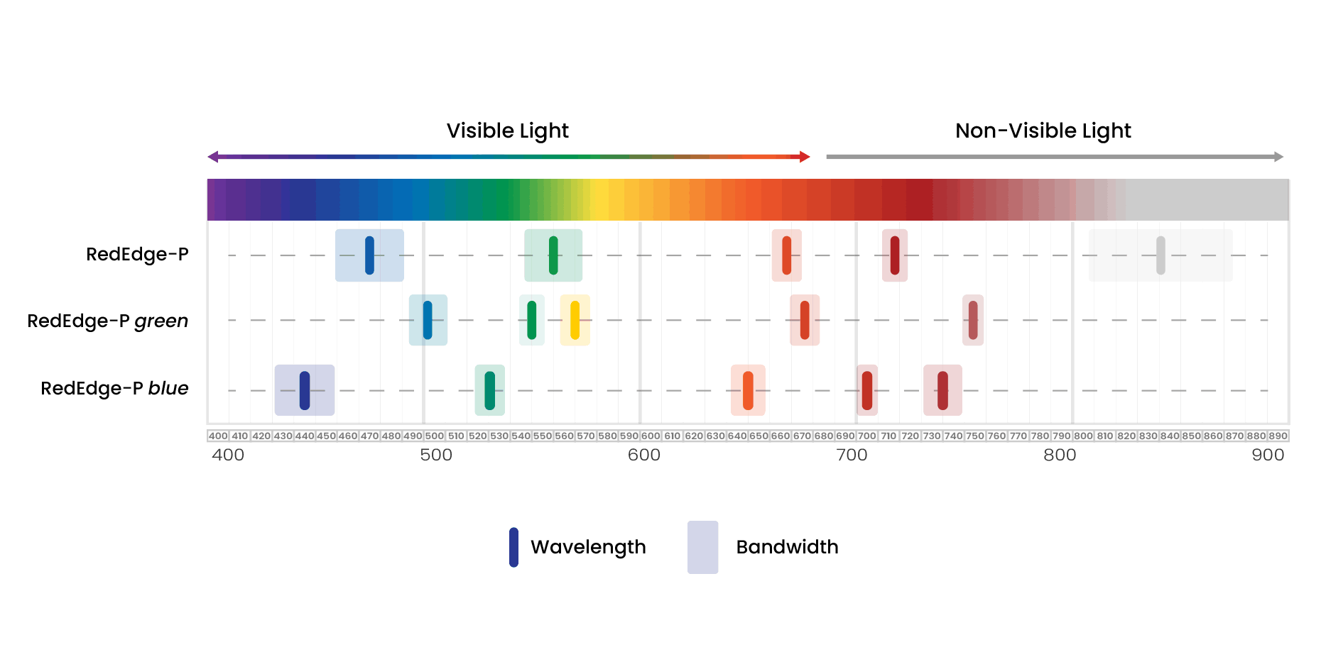 パンクロマティックバンドのおかげで、RedEdge-Pは植物計数や高度な植生研究などの機械学習アプリケーション向けに高解像度のRGBおよび多波長画像を可能にします。