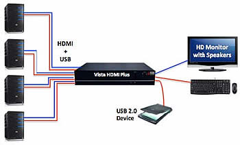 Vista HDMI 4Kは各々の接続したコンピューターのために連続してUSBのキーボードとマウスの接続をして、異なるPC間でスイッチングするときにキーボードとマウスのコントロールは途切れません。